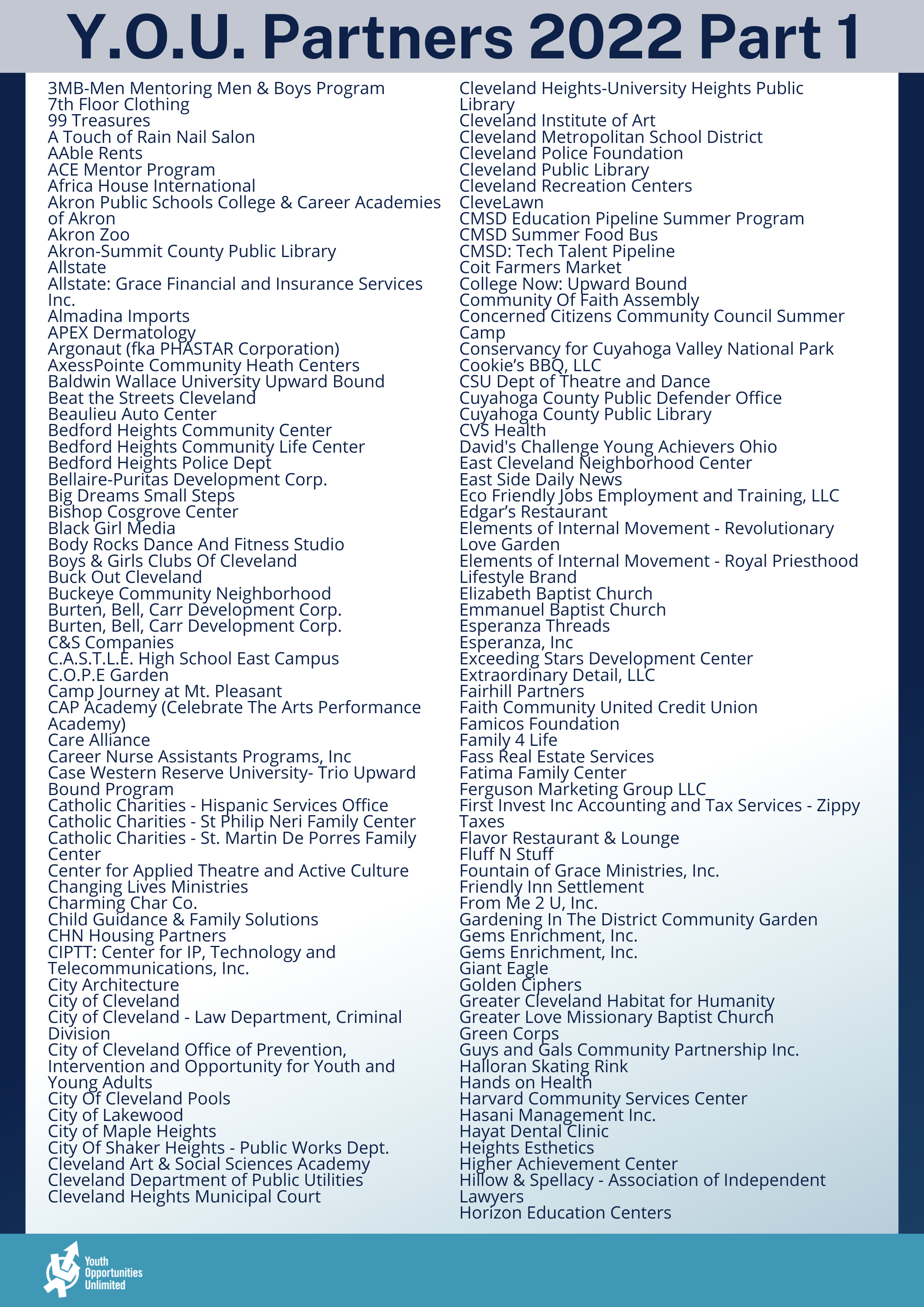 Partners We are able to accomplish our mission thanks to our incredible partners within our community: Report to the Community