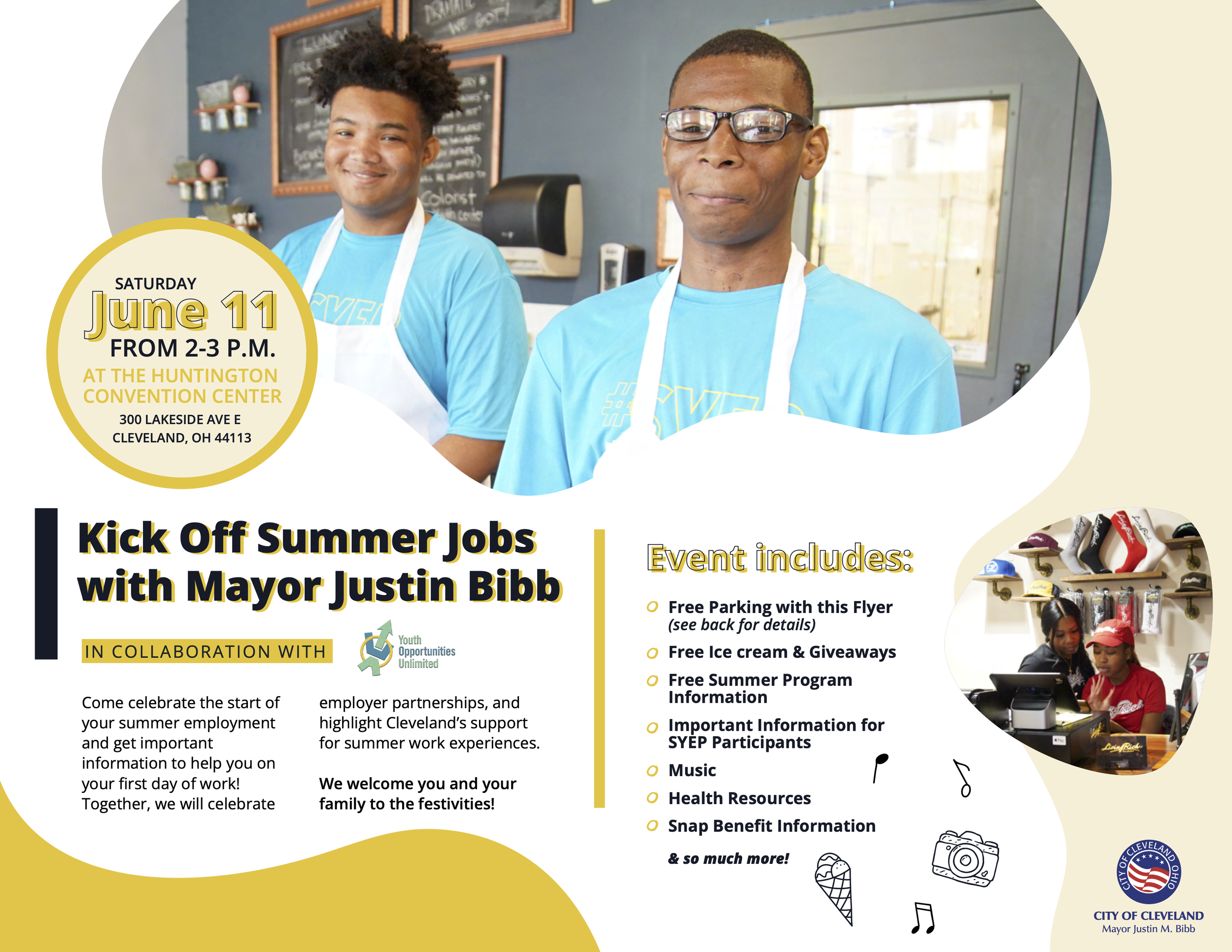 Kick Off Summer Jobs with Mayor Justin BibbSaturday, June 11 from 2-3pm DOWNLOAD THE FLYER DOWNLOAD THE FLYER